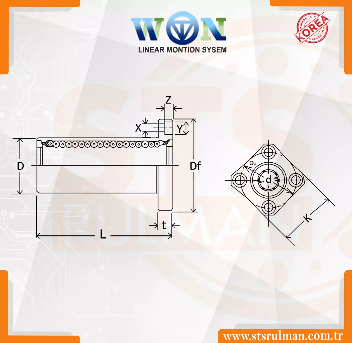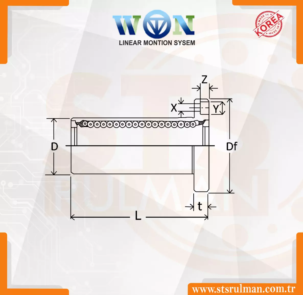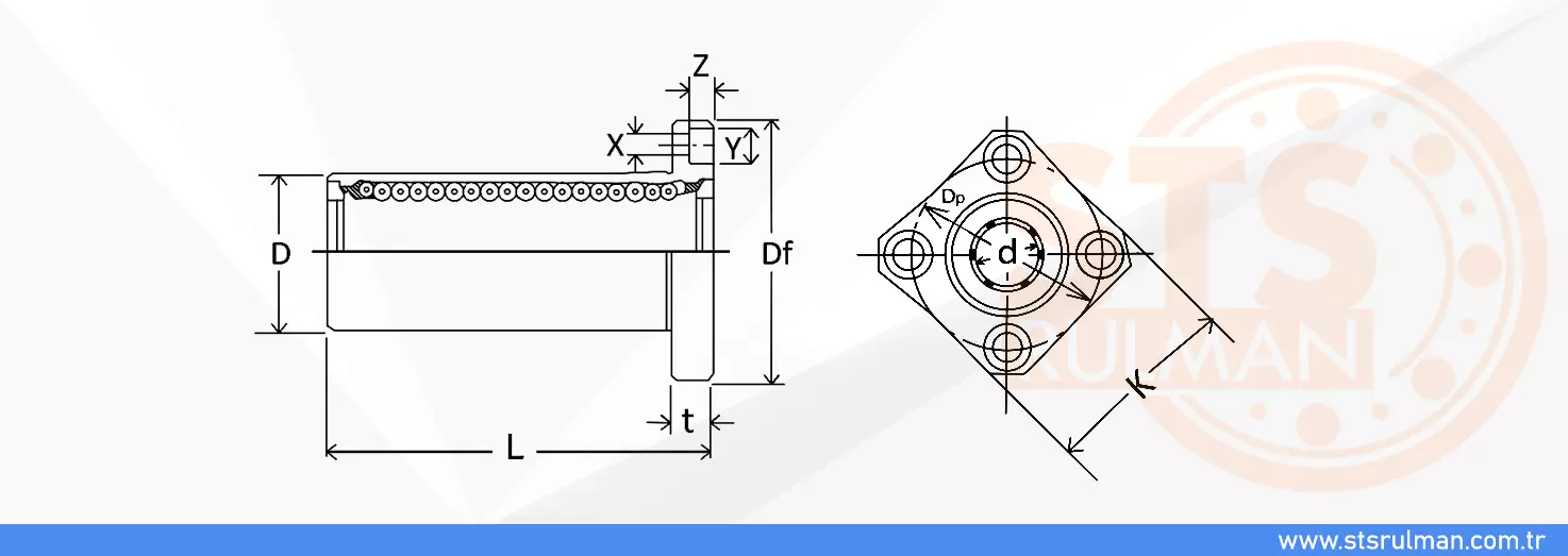 Ürün Kodu | d | D | L | Df | K | Dp | t | X | Y | Z | C (N) | Co (N) | Ağırlık (g) |